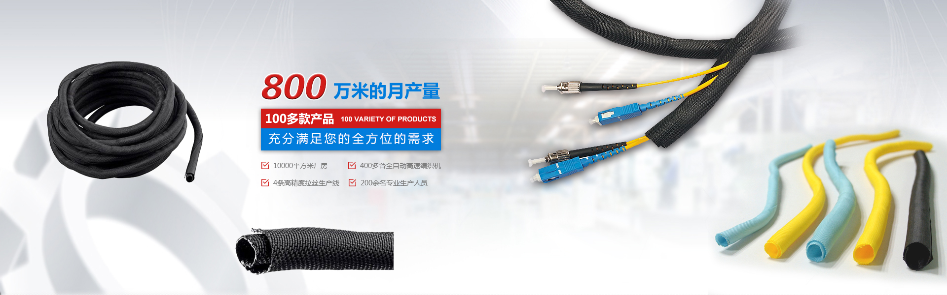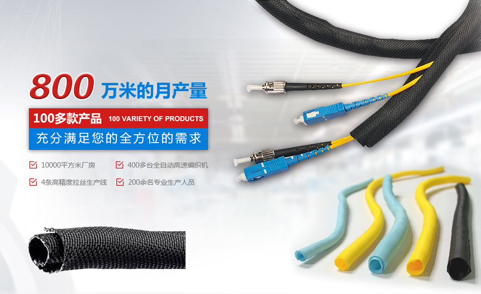自主設(shè)計(jì)、研發(fā)、規(guī)?;笮蜕a(chǎn)企業(yè) 擁有廠(chǎng)房10000平米,400多臺(tái)全自動(dòng)。高速編織機(jī)四條高精度紡絲生產(chǎn)線(xiàn),員工200余人,月產(chǎn)量800萬(wàn)米,中國(guó)最大絕緣保護(hù)套管生產(chǎn)企業(yè)之一。
