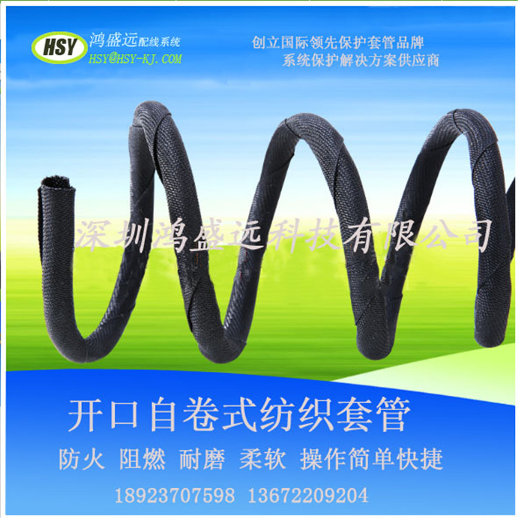 自卷式紡織套管(HSY)是用聚酯單絲和聚酯復(fù)絲紡織而成,具有耐磨性,耐酸性,防塵性,柔軟性,操作簡單,方便,快捷等特點(diǎn),開口式的結(jié)構(gòu)有利于保護(hù)內(nèi)部線束的保養(yǎng),重裝和檢修.產(chǎn)品廣泛應(yīng)用于高鐵行業(yè),汽車行業(yè),通訊行業(yè),自動(dòng)化設(shè)備等各種線束的保護(hù),尤其適用于不規(guī)則形狀的線束領(lǐng)域.